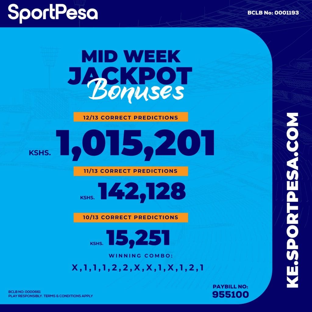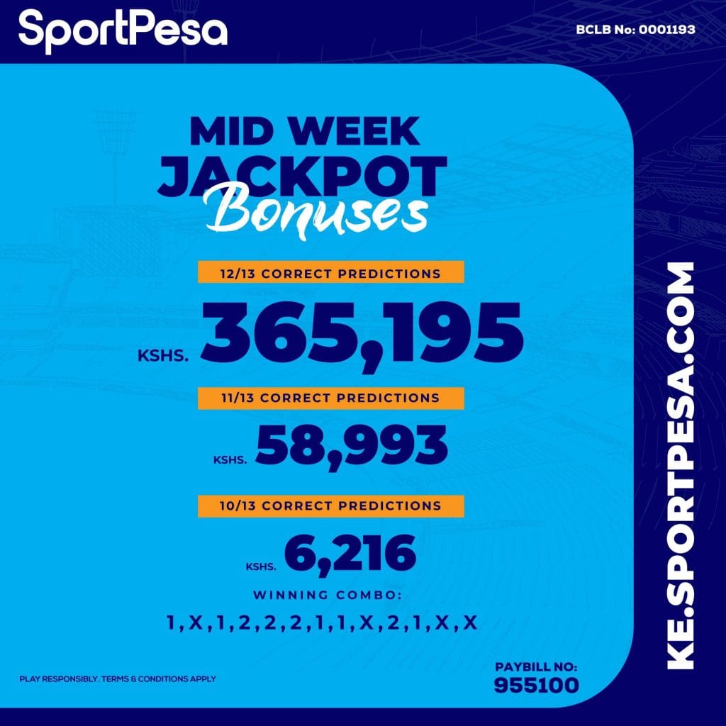 SportPesa Midweek Jackpot results yesterday SEE ALSO:Sportpesa midweek jackpot predictionAccurate Sportpesa Mega Jackpot predictions